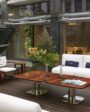 Completing the settings are tables and coffee tables that introduce functionality with a distinctive character. The Round Coffee Table, crafted entirely from solid Sapelli mahogany, is a work of art and craftsmanship in compact dimensions; it features a three-legged base supporting a circular top with luminous grain, refined as a standalone piece or combined in varying sizes to create dynamic compositions. By contrast, Bitta made entirely of stainless