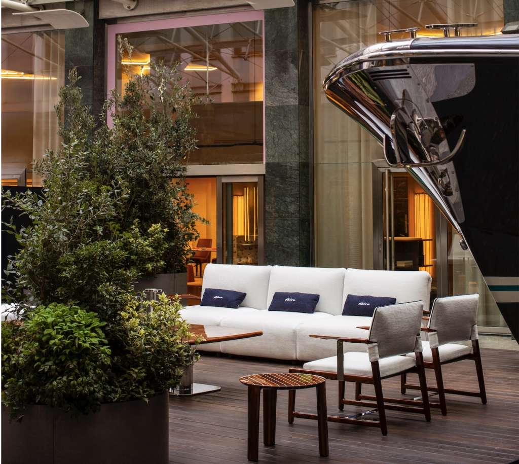 Born last year, Exteta x Riva is a co-branded line that brings together Exteta’s unique savoirfaire in the outdoor world with the irresistible glamour of Riva yachts. From this meeting of excellence in their respective fields emerges a complete collection of outdoor furnishings designed to enhance, with innate elegance, both residential and hospitality spaces as well as yacht decks.