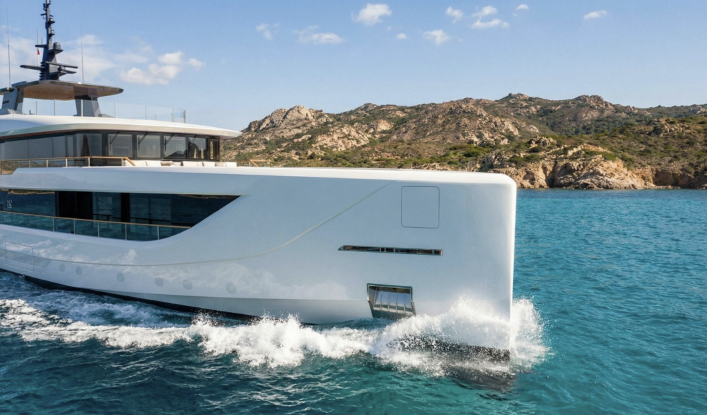 The layout possibilities respond directly to the owner’s vision and lifestyle: Owner’s suite on the main deck, with an exclusive terrace and direct connection to the sea; Formal or informal dining area, with modular layout and terrace use for aperitifs, after-dinner moments or outdoor cinema; Optional private gaming room on the lower deck, with indoor cinema and adjacent outdoor area; Wellness area, featuring a panoramic sauna and jacuzzi on the terrace; Fully equipped gym, with panoramic views for an exclusive indoor–outdoor experience.