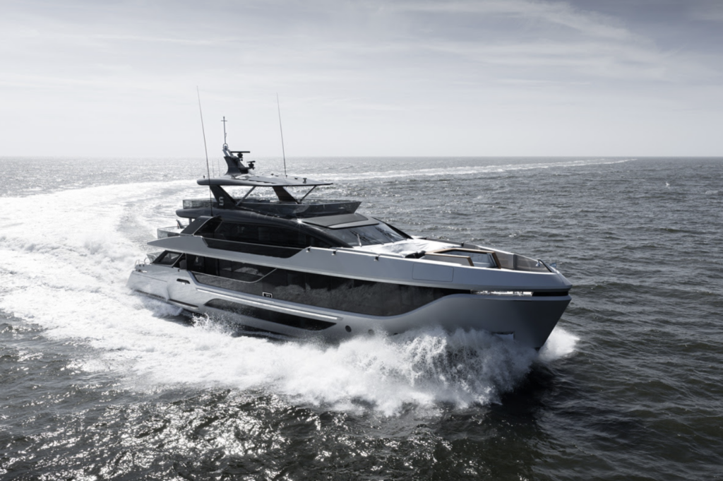 A key goal throughout was keeping the yacht manageable for an owner-operated crew while achieving the fit and finish typically found on much larger vessels. The interior draws on 78 different materials among them ebony wood and fine leather alongside bespoke furniture pieces created specifically for the yacht.
